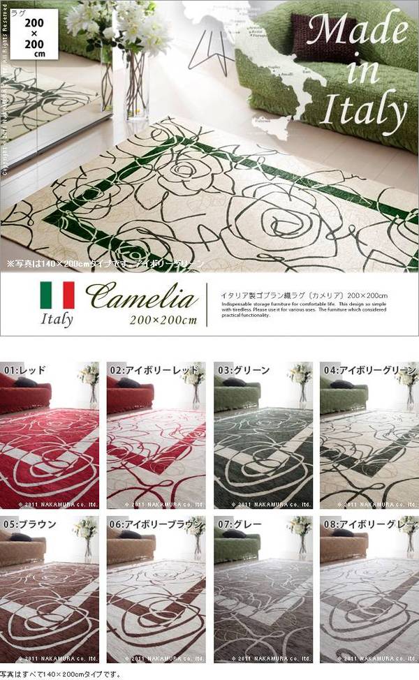 イタリア製ゴブラン織ラグ Camelia〔カメリア〕200×200cm ラグ ラグカーペット 正方形 1