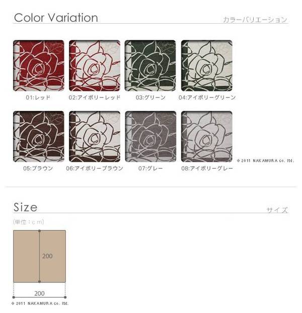 商品について:カメリアが描かれたゴブラン織の上品なやわらかいラグ。全面滑り止め加工でお子様からお年寄りまで足元安心♪洗濯可。床暖房・ホットカーペット対応。