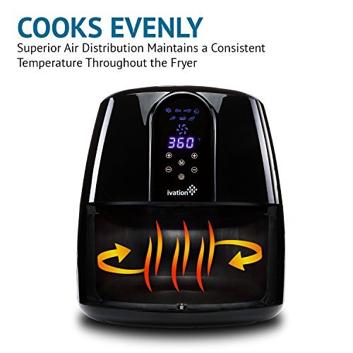 Set the exact cooking time and temperature for any food you want to prepare – at the touch of a button. With 1800W of power, the Ivation Air Fyer is remarkably effective at keeping steady temperatures throughout the entire cooking process.