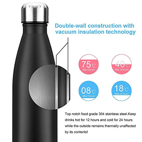 VACUUM INSULATED FOR COLD OR HOT DRINKS: Vanpo fashionable vacuum insulated water bottle is made from food grade 18/304 stainless steel which can keep your hot up to 8 hours, keep cold up to 12 hours