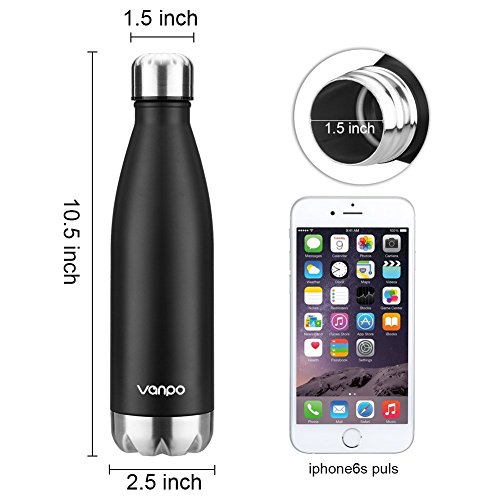 Vanpo Vacuum Insulated Water Bottle 17oz Double Wall Stainless Steel Cola Shape Water Bottle No Sweating, Keeps Your Drink Hot & Cold Perfect for Outdoor Sports Camping Hiking Cycling