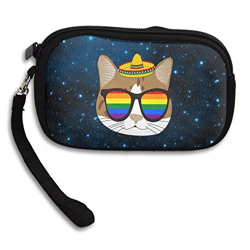Mexico Cute Cat With Gay Pride Sunglass Coin Purse Wallet Wristlet Pouch Coin Wallet Zipper Cha...
