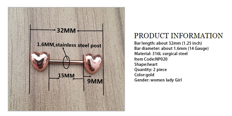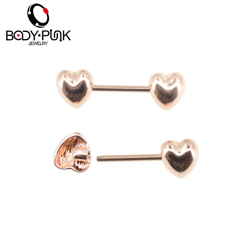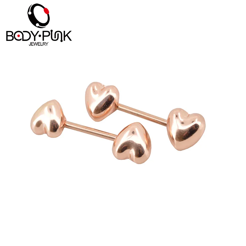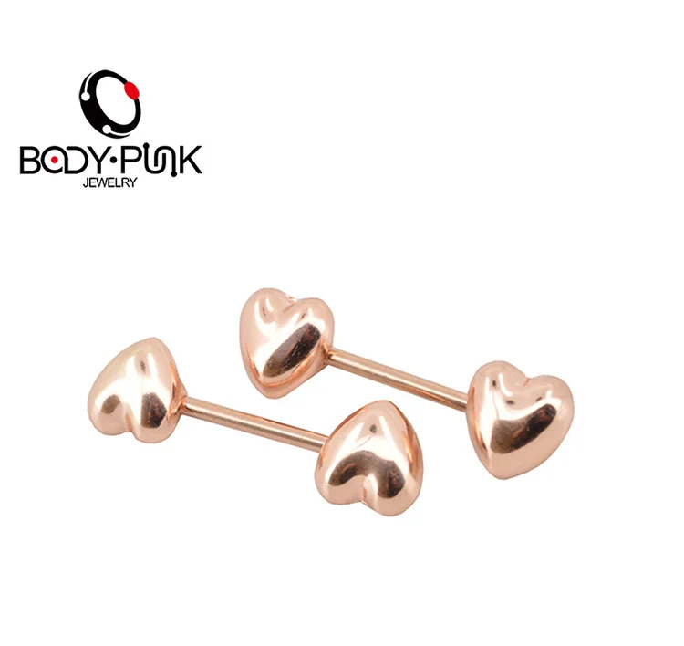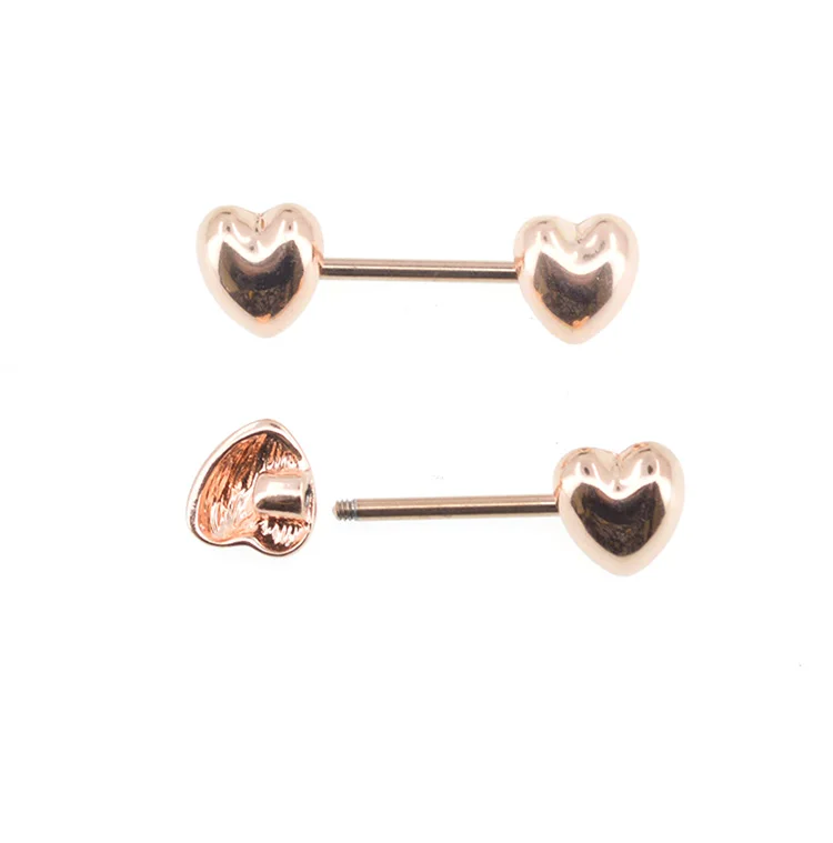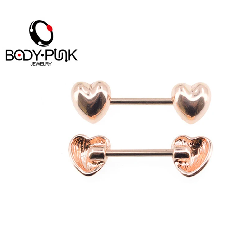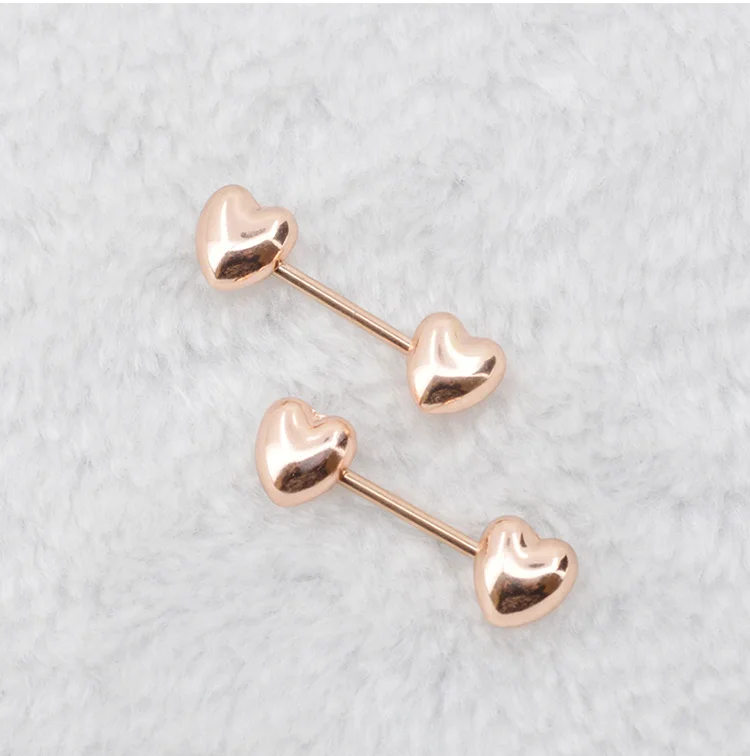 Features:Body Punk Jewelry Stainless Steel Rose Gold Heart Nipple 2pk