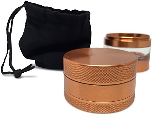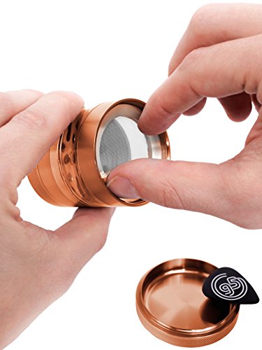 ✅ PERFECT SIZE ALWAYS - Our 5 piece grinder fits in the palm of your hand. You receive 2 grinders, not 1. Remove the clear jar portion of your multi-chamber grinder and you have a TRAVEL-SIZE grinder. We have included a FREE TRAVEL BAG and guitar pick.