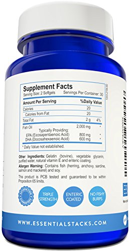 TRIPLE STRENGTH - With 800mg EPA and 600mg DHA per serving, our Omega 3 fish oil is 3x higher than regular mass market fish oils in the two Omega 3 fatty acids your body needs to support heart, joint and brain health.