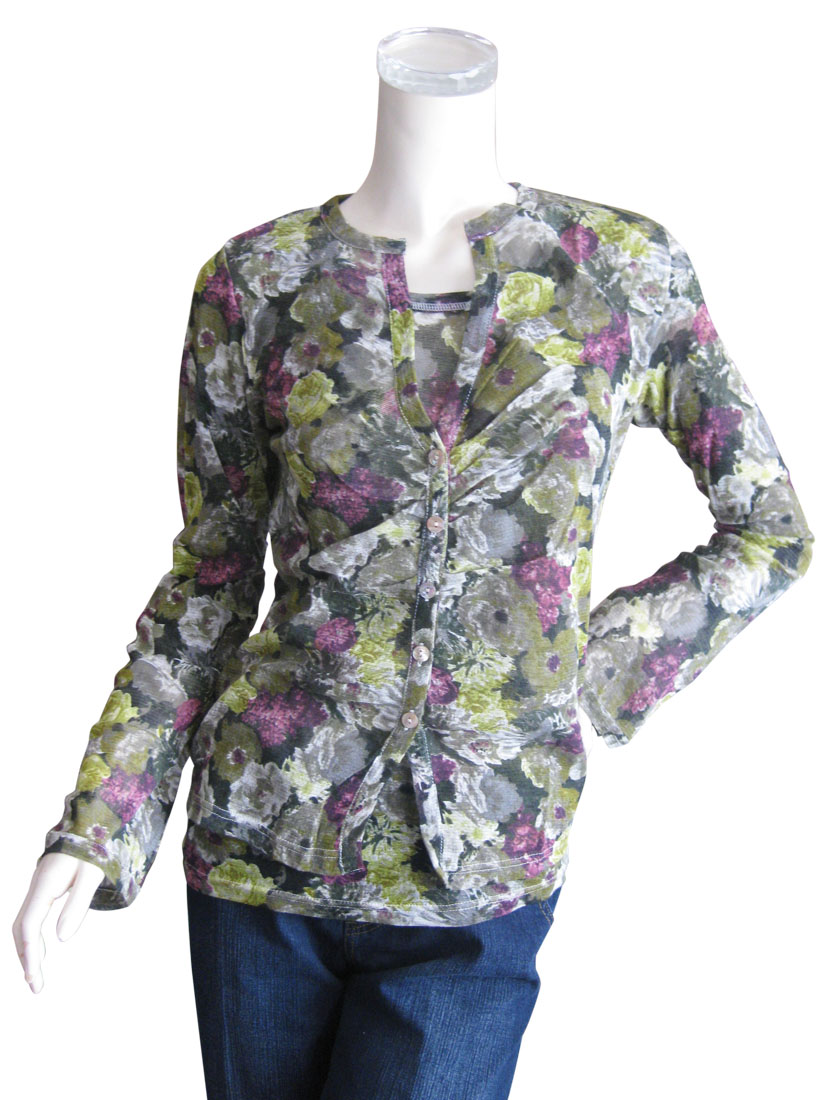 | 日本製 綿100% アートな花柄がお洒落なアンサンブル | |
