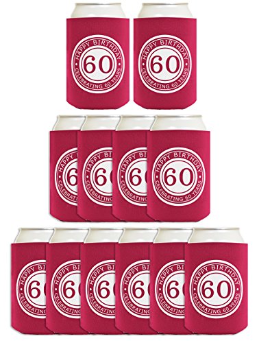 60th Birthday Gift Celebrating 60 Years 12 Pack Can Coolies Drink Coolers Mag...