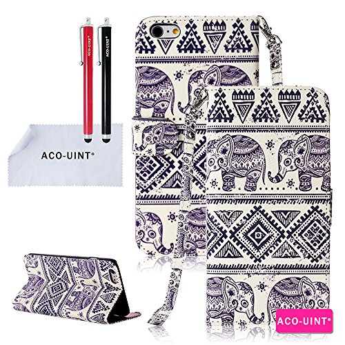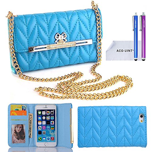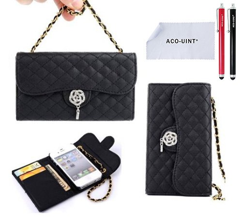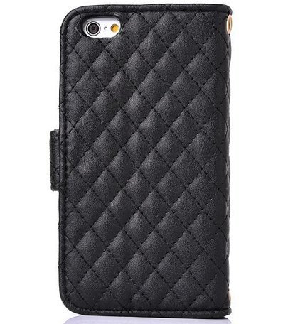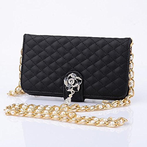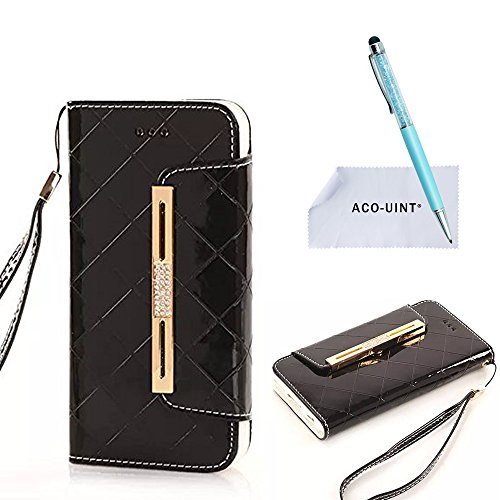 ACO-UINT iPhone 6s Plus Wallet Case,iPhone 6s Plus Handbag Purse Case,Luxury Soft Grid PU Leather Wallet Case,Folio Flip Book Cover Case with Pearl Strap for iPhone 6/6s Plus Black