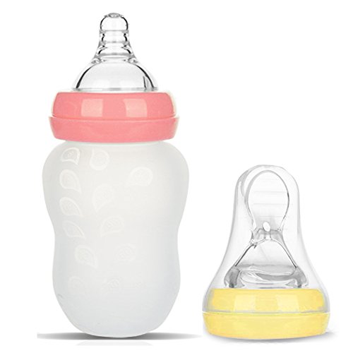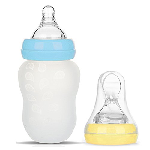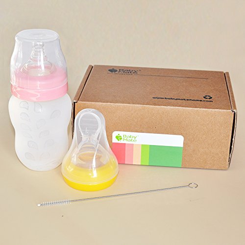 -. Feature : 2-IN-1, EASY TRANSITION FROM LIQUID TO SEMI-SOLID FEEDING - Buy one (milk bottle), get one free (spoon feeder), great for ages 6 months and up - X-cut nipple mimics natural breast & helps adjust the flow of milk - Silicone spoon soothes teething pain - Wide neck designed for easy filling & washing. / JUST LIKE BREASTFEEDING WITH ANTI COLIC NIPPLE - Shaped with a raised, textured area that mimics mum's breast for easy transition between breast and bottle - Internal ridges prevent collapse for uninterrupted feeding - Anti-colic valve allows air to flow back into the bottle instead of baby's tummy. / SILICONE SQUEEZE SPOON MAKES FEEDING A BREEZE - The ergonomic spoon feeder designed for babies; Squeezable silicone bottle with scale ensures accurate measurement, reducing spillage - Soft spoon is made of food grade silicone, helping relieve baby teething discomfort and massage your baby's gums - Spoon feeder improves hand-eye coordination and fine motor skills. Suitable for breastmilk, formula or pureed food. / BABY FOOD GRADE & VERY EASY USE / CLEAN - Food grade silicone nipple & spoon; Food grade polypropylene caps - Completely free of BPA, PVC, lead, phthalate or other toxins that can leach into your baby's food - Clear graduations in milliliters and ounces ensure accurate measurement and make it simple to determine how much your baby has eaten - Wide neck with rounded corner for easy cleaning - Clean Tips: a cleaning brush included for holes on the nipple and spoon, dishwasher safe (top rack only). / SATISFACTION GUARANTEED - Genuine BABY MATE Trademarked Baby Safety Product - Design and Quality by BABY MATE LLC of CANADA - TRADEMARK filed in U.S.A. - In business since 1995 - Satisfaction Guaranteed! If not, we shall send a free replacement or issue a full refund. - For U.S. customers, this product comes with 1-MONTH FREE TRIAL & FREE life time customer service - You can always come to us for discounted parts or free customer service at: http://www.amazon.com/seller/BABY-MATE
