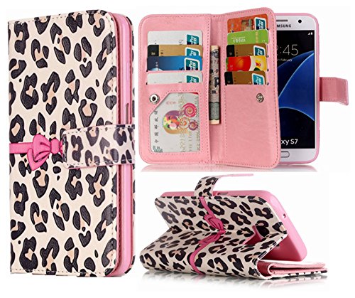 S7 Wallet Case, Magnetic Detachable S7 Wallet Purse Hynice Samsung Galaxy S7 Leather Folio Flip Slim Case With Zipper Credit Card Slots, Card Holder, Wrist Strap Wallet For Women Men(Lichi-Red)