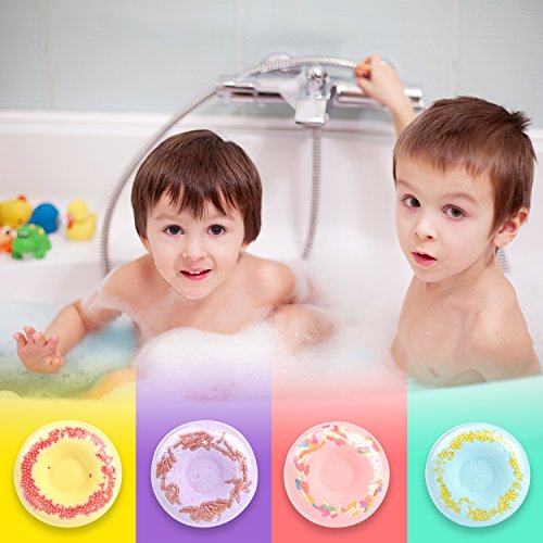 -. Feature : SET INCLUDES FOUR BATH BOMBS: strawberry, blueberries, grapes and lemon 4 kinds of fragrance, it is FDA certified. / PURE NATURAL MINERAL INGREDIENTS: Contains no artificial flavors or colors, will not stain your tub. It can effectively soften keratin, clean excess fat and make skin smooth and tender. / NATURAL BATH SALTS: It contains many trace elements. Can be used to wash your face, feet, can clean the skin, long-term use makes the skin more smooth and delicate, more moist. When bathing, it can soften the stratum corneum and can be used for bathing feet, baths, and hot sP.R.Ings. / ELEGANT GIFT SET: Exquisite gift box packaging, lovely fragrance, it is suitable for a gift to the special one, mom, wife, daughter or you love. / MOISTURIZING SKIN CARE: Fit dry or normal skin, with deodorization, exfoliation, and oil control.