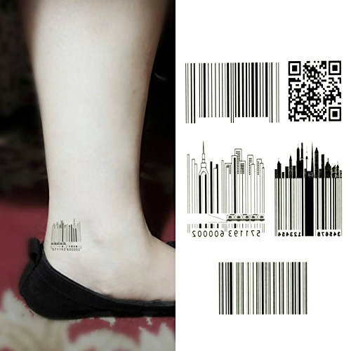 Oottati Small Cute Temporary Tattoo Barcode City Qr Code (2 Sheets)