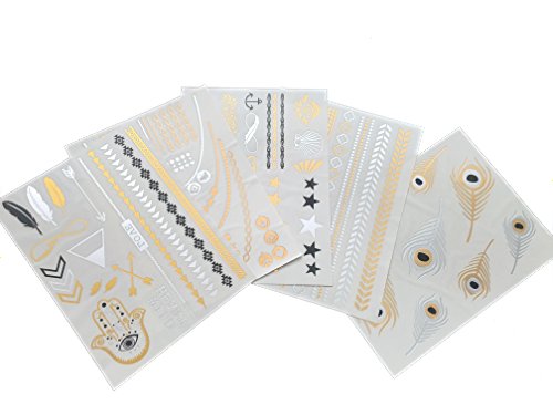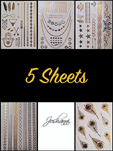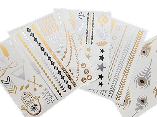 - **MOST POPULAR ASSORTED VARIETY OF DESIGNS PERFECT FOR INDOOR POOLS, PARTIES, FESTIVALS, BIRTHDAYS, EVENTS AND NIGHTCLUB** You'll get 5 large sheets of over 55 High Quality tattoos: Beautiful Symbolic Hamsa Eye, Dream, Infinity, Wild Child, Arrows, Feathers, Chains, Hearts, Stars, Peace, Love, Butterfly, Seashell, Anchor Rings, Necklaces, Armbands and so many more designs and various patterns to choose from to wear with any outfit or swimwear of your choice!