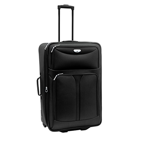 Studio : Samboro Luggage Canada Corporation Publisher : Samboro Luggage Canada Corporation Product Description Durable 1200D Polyester. Fully lined interior with mesh pocket. Expandable by 2 1/2". Push button locking trolley handle. Recessed in-line wheels. #10 self-repairing nylon coil zippers. ID tag. Size: 25" x 17.5" x 9" ( 2.5"), 8.5lbs Type: Upright, Rolling, SoftsidedMaterial: PolyesterPattern: SolidFeature: Expandable, Telescoping Handle, Multi-CompartmentExact Color: BlackColor: Black 0