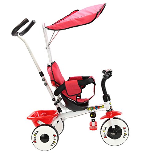Studio : MTN Gearsmith Publisher : MTN Gearsmith Product Description Description This is our new ultimate 4-in-1 tricycle. The perfect Fit 4-in-1 trike is ready to grow with your child! With all of the features of your favorite stroller, this trike is not only a perfect fit for your child but also a "perfect fit" for parents too! The removable shade canopy will protect your child from the elements, while you can check on her with the canopy's peek-a-boo flap. Carry snacks and toys in the handy rear cargo basket. When he is ready to pedal the trike, the foot rest is easily raised or lowered out of the way. Simply remove the height-adjustable handle when the child is all set to ride solo. The trike has quiet ride tires when pedaling. Competitive Price With High Quality Can Be Realized Here. Welcome! Feature Brand new and high quality. Can be assembles in 4 ways according to your kid's age Removable canopy for UV protection High-back seat for comfort and safety removable wrap around safety bars Multi Adjustable Push handle can control tricycle movement Front and Back Foldable Footrest, Pedals become footrests for early stages Back storage basket Includes bell Specifications Color: Green, Red Material: iron and PP plastic (frame), rubber(wheels), 600D oxford cloth(shade canopy), EVA sponge(protect bar and holder) Overall Dimension: 33' x 19' x 39' Product Weight: 18lbs weight Capacity: 55lbs Suitable age:1-4 years old Package included: 1 x children tricycle, 1 x installation manual 0