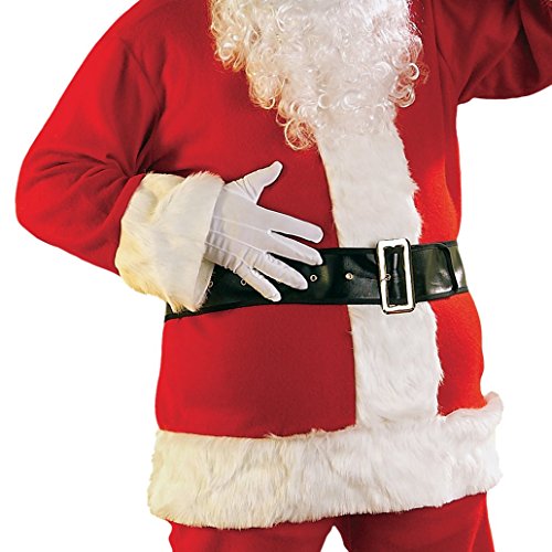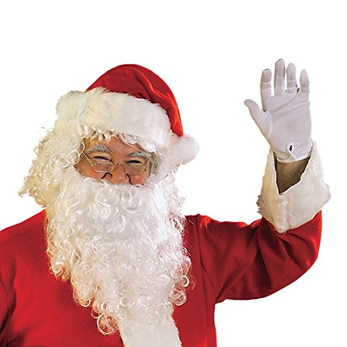 -. Binding : Apparel -. Brand : Rubie's -. ClothingSize : One Size -. Color : Red -. Department : mens -. Feature : Bright red flannel Santa Suit features a pullover jacket trimmed with white faux fur and pants designed to be tucked inside boots or included boot-tops along with matching hat / White gloves, black vinyl belt with a metal buckle and vinyl boot-tops, designed to be worn over your own black shoes, are included / Santa glasses, beard, wig, stuffable belly, bell, and sack all available separately from Rubie's / Review Rubie's size chart before making a buying decision, Santa suits do run large / Friends, family, and the kid inside everyone will enjoy a visit from Santa -. Genre : Holiday - Christmas -. IsAdultProduct : 0 -. Label : Rubies Costumes - Apparel -. Manufacturer : Rubies Costumes - Apparel -. MPN : 23311 -. PackageQuantity : 1 -. PartNumber : 23311 -. ProductGroup : Apparel -. ProductTypeName : ADULT_COSTUME -. Publisher : Rubies Costumes - Apparel -. Size : One Size -. Studio : Rubies Costumes - Apparel -. Title : Rubie's Bright Red Flannel Santa Suit With Gloves