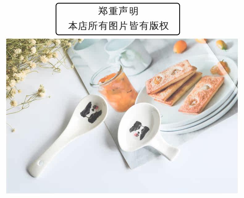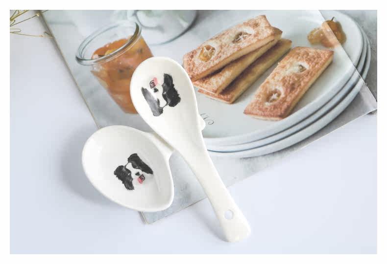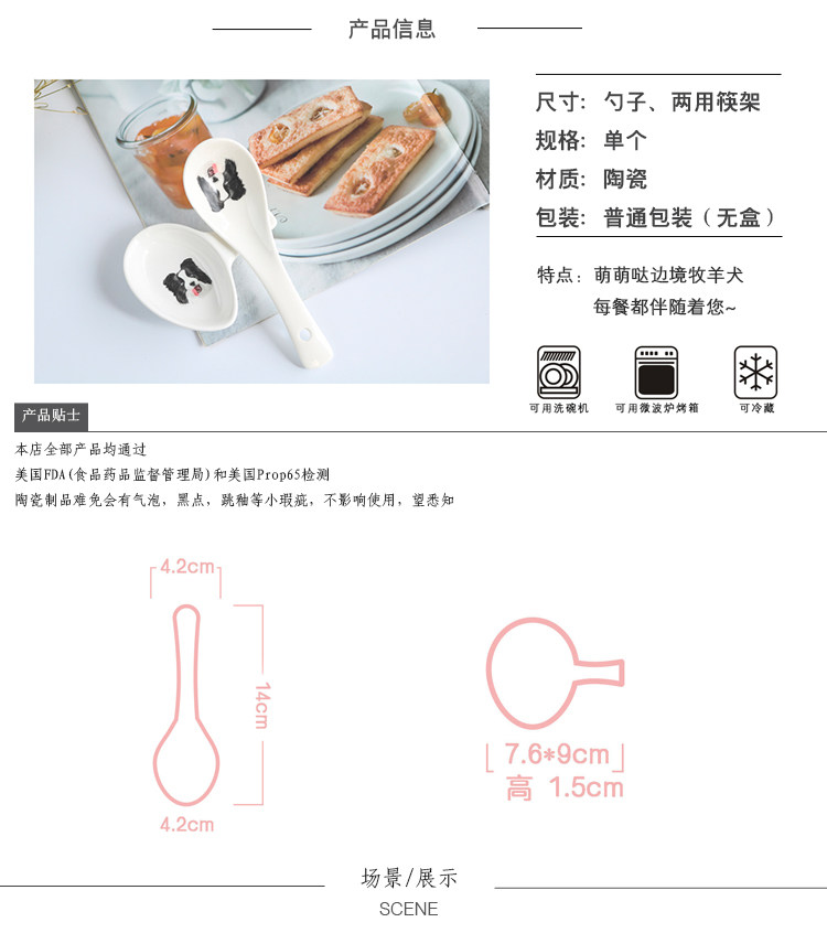 边牧系列陶瓷两用筷架家用甜品小勺子韩式创意餐具米饭勺汤勺调羹