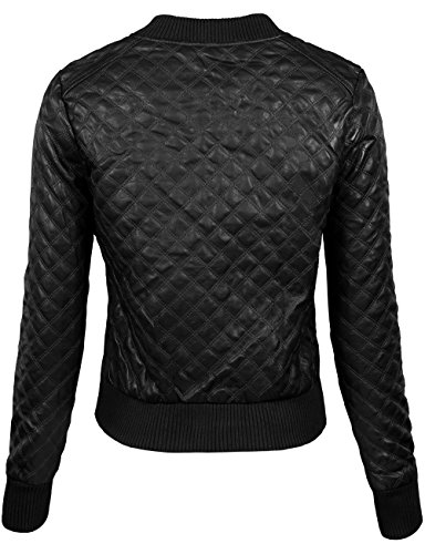 Binding : Apparel Product Description This classic, yet stylish faux leather quilted stitching varsity bomber jacket with elastic rib collar gives unique rock variety designs. There are zipper pockets and closure just like other jackets along with elastic ribbed cuff and bottom hem to maximize its comforts. Those stretchy elastic rib cuff and bottom hem is to maximize comfortable movements and decorative all over quilted stitches are to provide its unique and rich texture. This is very easy yet savvy to design with lots of ways to wear - simply zip-up all the way or unzip and wear freely matching with your favorite pants and shirts. You may also can check our KOOLDO basic matching tops. Sizing information: Small- Bust: 36in Shoulder: 15in Sleeve: 25in Length: 21in / Medium- Bust: 37in Shoulder: 15.5in Sleeve: 25.5in Length: 21.5in / Large- Bust: 38in Shoulder: 16in Sleeve: 26in Length: 22in 0