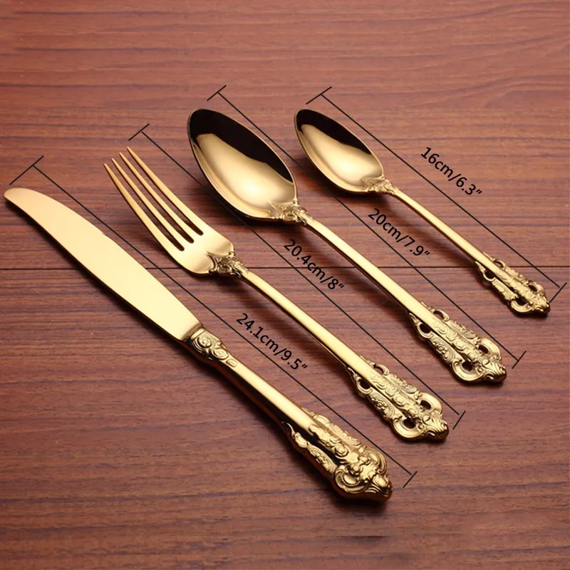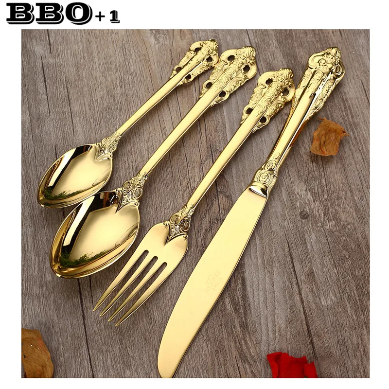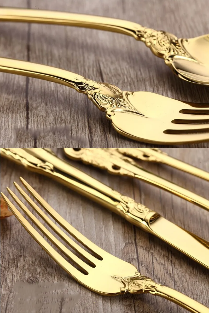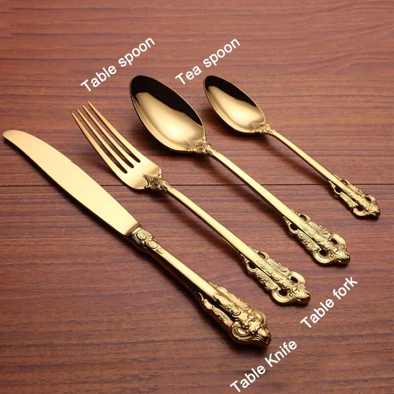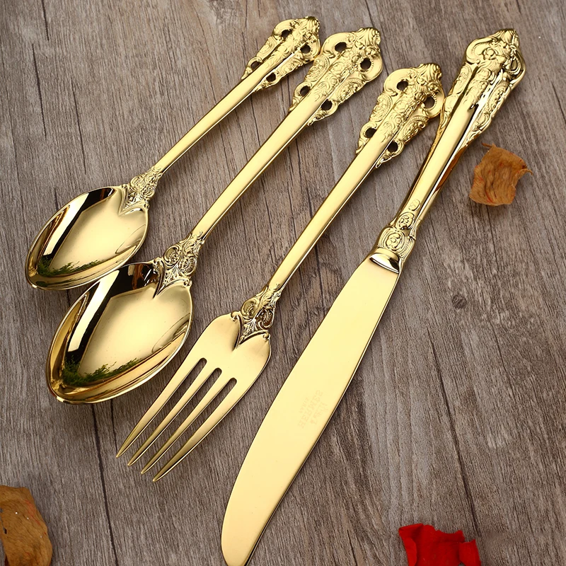Type:Retro Creative Rose embossed golden spoon fork knife