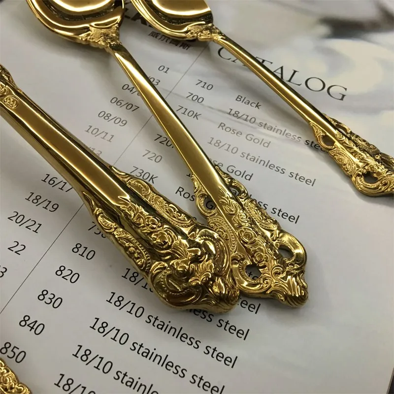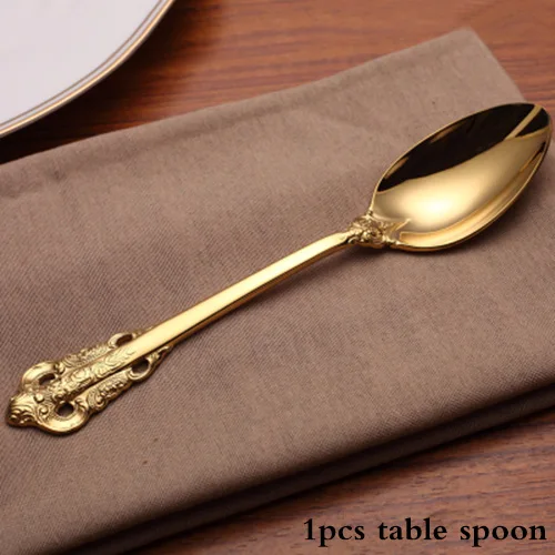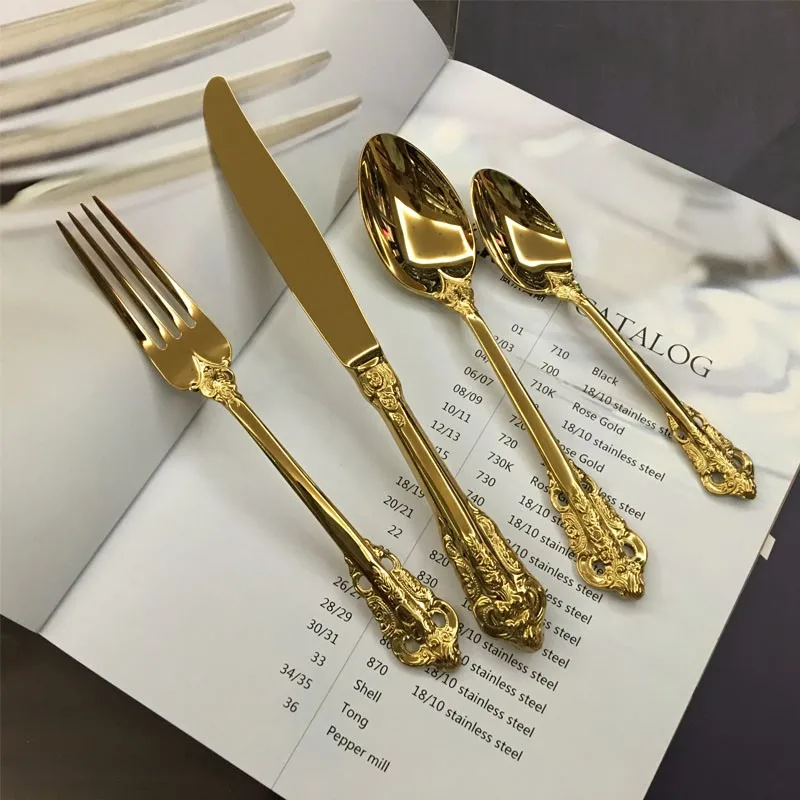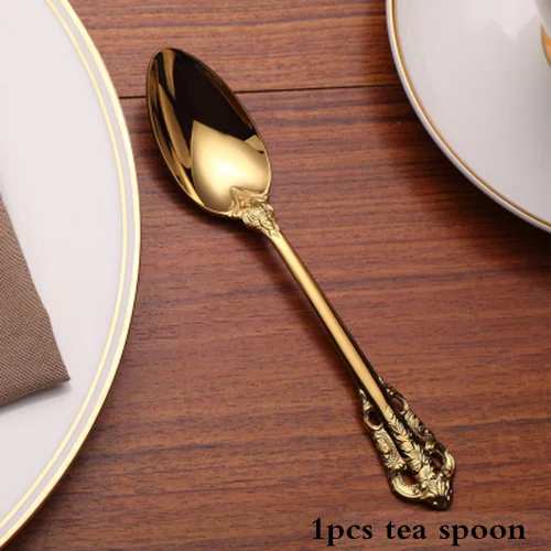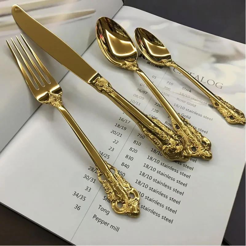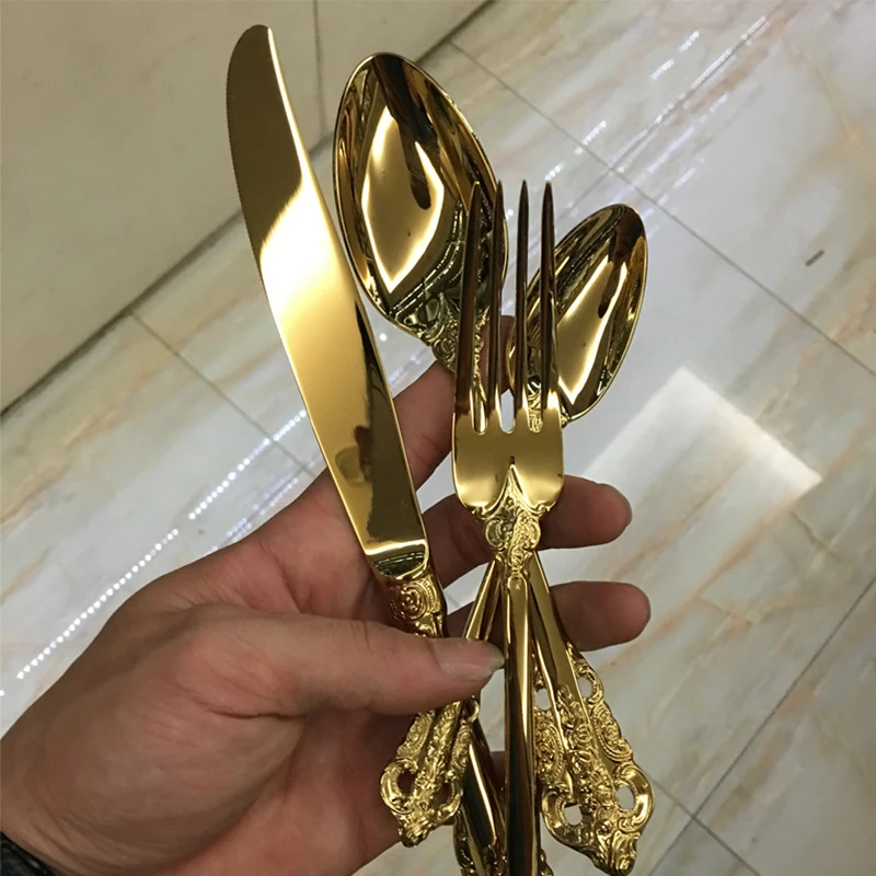 Type:Retro Creative Rose embossed golden spoon fork knife