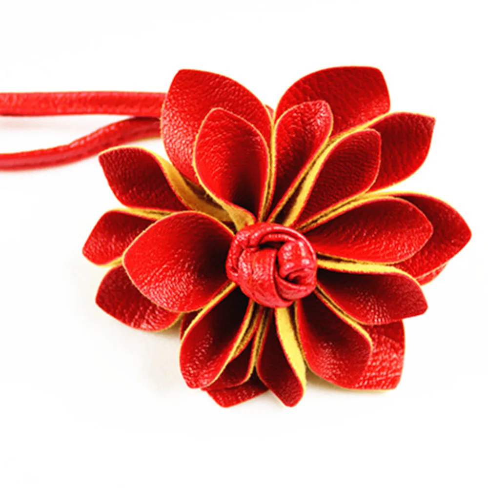 girl belt flower Stretch Elastic women Waist Belt PU Leater three-dimensional Solid Vintage cinturon long Bohemia Waist 7 colour