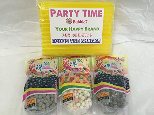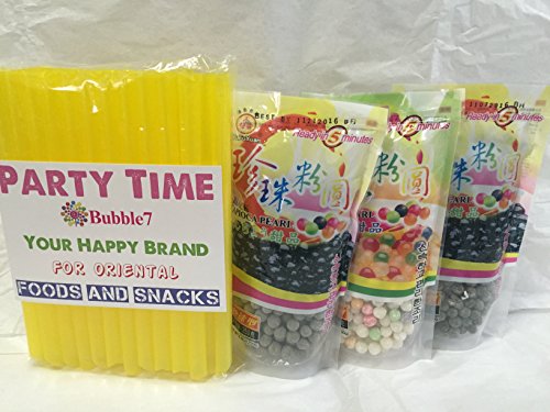-. Feature : 2 packs of (BOBA Black Tapioca Pearl) Bubble, plus 1 Pack of (Color Pearl Bubble), With 1 Pack of 50 BOBA STRAW / Two Pack of - Black Tapioca Pearls, plus one pack of Color Tapioca Pearls bubble. / Make Your Own Bubble Tea! Net Wt. 8.8 Oz (250g) each, Pack free 1 pack of 50 BoBa Straw (Variety Color) / Perfect for the college student, military personnel, the office, birthdays, Halloween, Pinatas, holidays or any other special occasion. / Cook Ready in 5 Mins. Great for late night treat, break room or anywhere you need a quick snack.