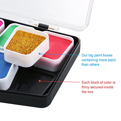 Quality and safety: this colorful arts cosmetic grade face painting sets are safe, without vegan and paraben, nontoxic, water based and very safe; Applying only approved ingredients fully compliant with the US Food and Drug Administration (FDA) and toy and cosmetic regulations
