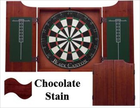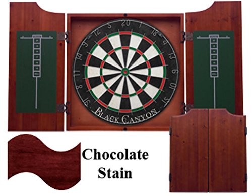 Studio : CueStix International Publisher : CueStix International Binding : Misc. Product Description MDF Construction Chocolate Stained Pine Veneer Finger-mitered joints provide added stability Decorative routing on each door panel Scoreboards inside each door panel Inside Dimensions: 18.5" W x 18.5" H x 2" D Compatible with any official size bristle board (not included) Mounting Hardware included 0