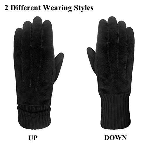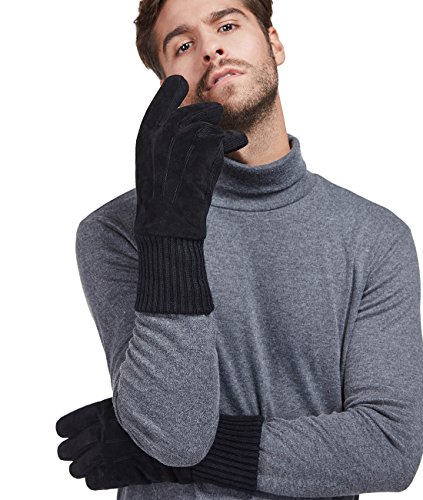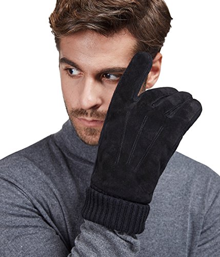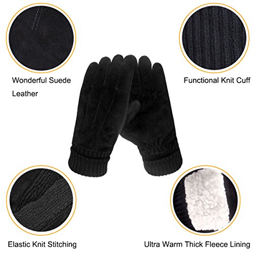 Binding : Apparel Product Description LETHMIK Leather Gloves. LETHMIK Mens Black Winter Gloves Suede Leather Knit Cuff with Warm Thick Fleece Lining; This pair of gloves is made of high quality Suede Leather, Superior abrasion vesistance, Softness of touch, suppleness, great strength, and lasting comfort. Great strength, plus the combination of knitting and leather between fingers, which helps the glove fit properly.