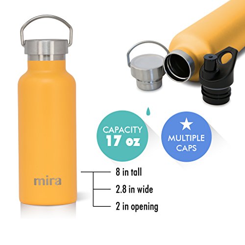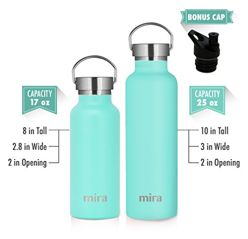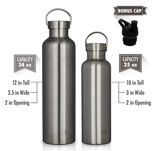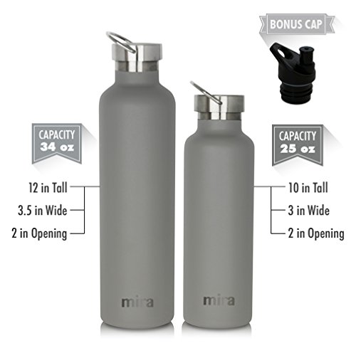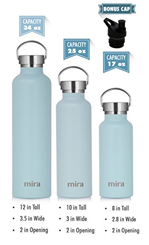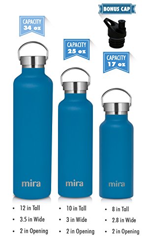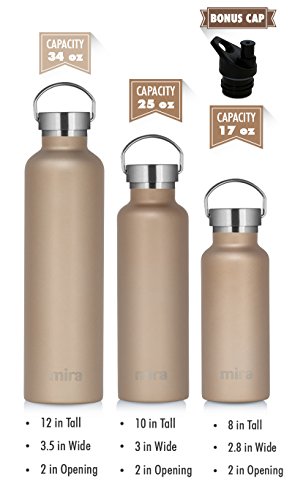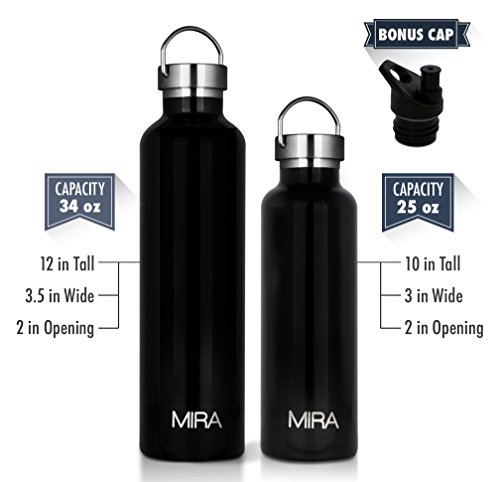 Studio : MIRA Brands Publisher : MIRA Brands Binding : Misc. Product Description MIRA Vacuum Insulated Portable Sports Leak-Proof Water Bottle | Double Walled Stainless Steel Travel Wide Mouth Bottle | No Sweating, Keeps Your Drink Hot Cold Sturdy, Durable Quality: This sleek and rugged sports water bottle is made from high quality food grade 18/8 stainless steel that will not break. It is crafted and designed to last and should not rust. Perfect Size: The capacity is large enough to fit your daily hydration needs. You can also store coffee or any other liquids. The stainless steel repels any lingering flavors. Put your portable sports water bottle in your gym bag, backpack or briefcase as your daily companion. Sip and Go: The travel sports water bottle comes with a stainless steel, insulated lid that will prevent any accidental leaks. The bonus lid is a sip sports cap that you can take to the gym to stay hydrated while you work out. Sip and go with the ease of one hand! Both lids are BPA and Phthalates free. Easy Flow: The open wide mouth allows the water to stream out while on the go to help you stay hydrated. The double walled vacuum insulated water bottle allows for easy filling and cleaning. Even when filled with ice, the bottle will not sweat. No coaster needed! Daily Lifestyle: Take this easy to carry portable water bottle while hiking, biking, shopping or leave it at the office. While sitting anywhere in any temperature condition, your cold drink will stay perfectly chilled up to 24 hours or your coffee, tea or hot drink will keep hot for up to 12 hours. Cleaning: Hand washing your sports water bottle is recommended with a bottle brush. The bottle is NOT dishwasher safe. The lid is top rack only, but hand washing is also preferred. Please do NOT store sugary drinks in the water bottle for more than 24 hours. 0