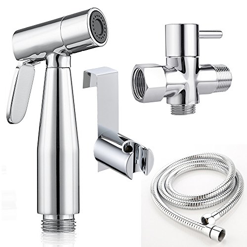 Best Modern Chrome Toilet Shattaf Sprayer, Hand Held Bidet Sprayer Bathroom Toilet Set, 49 Inch Metal Hose, T-Valve and Mounting Clip Adapter
