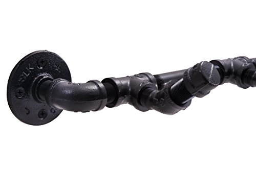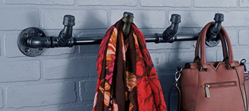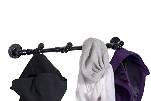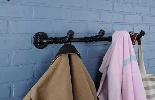 -. Title : Wall Mounted Industrial Pipe Coat Rack by Pipe Decor | Heavy Duty, Rustic Iron DIY Style, Black Electroplated Finish For Entryway With Mounting Hardware Included, 4 Clothes Hooks, Oil And Rust Free
