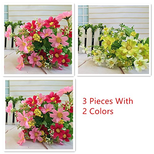 3 Bunches of Cineraria Artificial Flower Bouquet Home Office Decor (1PCS Light yellow and White/2 PCS Rose Pink)