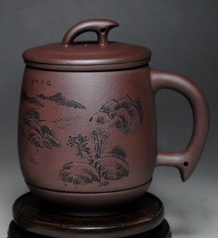 -. Title : Chinese Handmade Yixing Zisha Purple Clay Tea Mug with Infuser, 14 oz.