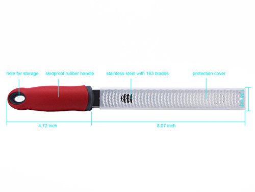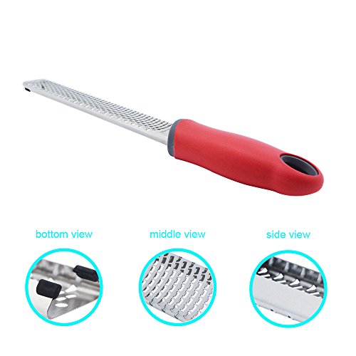 Acekit Stainless Steel Lemon Cheese Grater and Zester Fruits and Vegetables Razor Ergonomic Design Handle Soft Holding Feeling-Red Handle