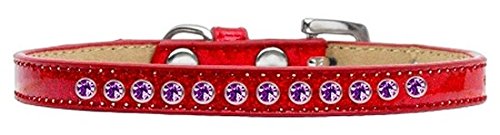 Studio : Mirage Pet Products Publisher : Mirage Pet Products Binding : Misc. Product Description Mirage Pet Products Purple Crystal Red Puppy Dog Ice Cream Collar, Size 8. 3/8" wide collar adorned with 1 row of rhinestones and a rhinestone buckle. Fits a neck size from 5-7". Made in the USA. 0