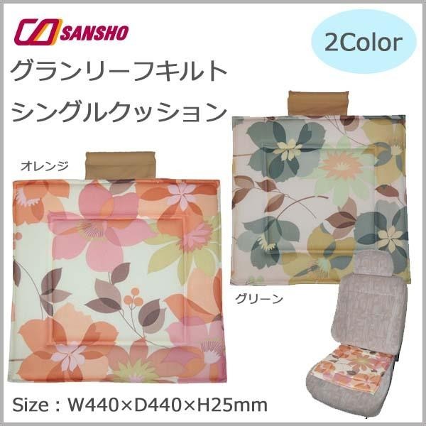 運転席などに敷いて使う、シングルタイプのクッションです。オレンジとグリーンの2色からお選びください。