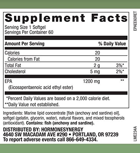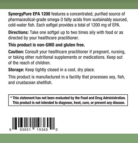 Product DescriptionEach SynergyPure EPA 1200 softgel provides a total of 1200 mg of EPA.0