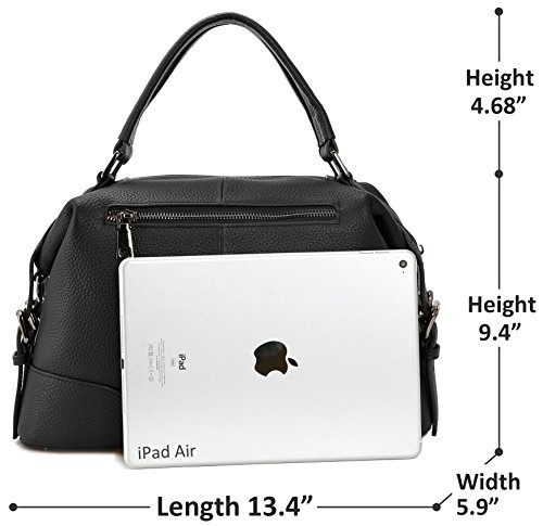 -. Feature : Well-designed compartments help keep a organized bag. It has a outside zipped pocket holding your keys, memo book and change. Inside the purse, a main compartments, 1 phone pouch, 1 card slot and 2 zipped pockets will hold your ipad mini, charger, sunglasses, cosmetics, and so on. / Solid fittings. All metal fittings are made of tarnish tone stainless steal. Zipper closure keeps your holdings in safe while providing smooth experience. Comfortable wide top handle and adjustable shoulder strap make it less hard to take the bag. / Leather of the purse comes from first layer of cow leather, bringing defined pattern and smooth feeling. We choose light-reflect polyester fabric as lining. You will find it easy to find stuff in bag. / Dimension: 13.4 (L) × 9.4 (H) × 5.9 (W) inches. Weight: 2.6 lbs. The length of strap is 27.6~49.2 inches. When hanged up with purse, the top of strap will be 9.4~21.3 inches higher than top of purse. / After-sell: We earnestly promise that we will provide the highest quality products and the best after-sale services. Please feel free to contact us through "Contact Seller" when you need help, and we'll reply to you within 24 hours.