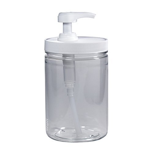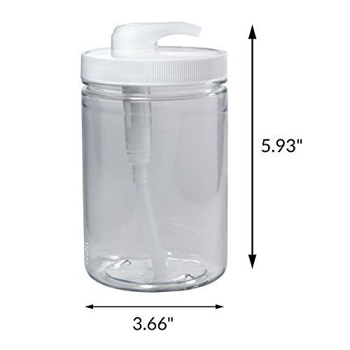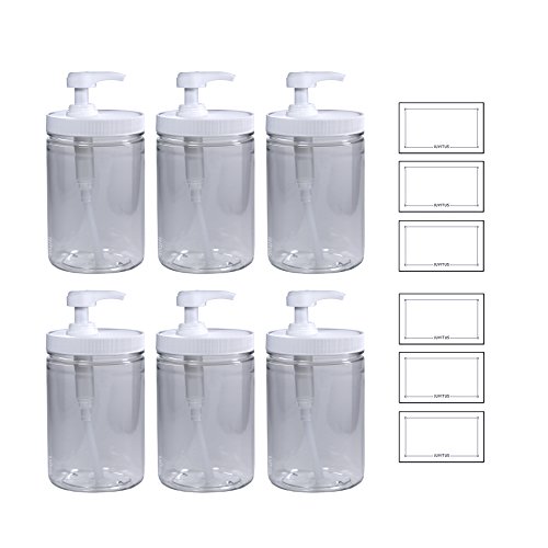 Clear 25 oz PET Plastic (BPA Free) Large Refillable Jar with Heavy Duty Twist Lock Cream Lotion Pump - (6 pack) + Labels
