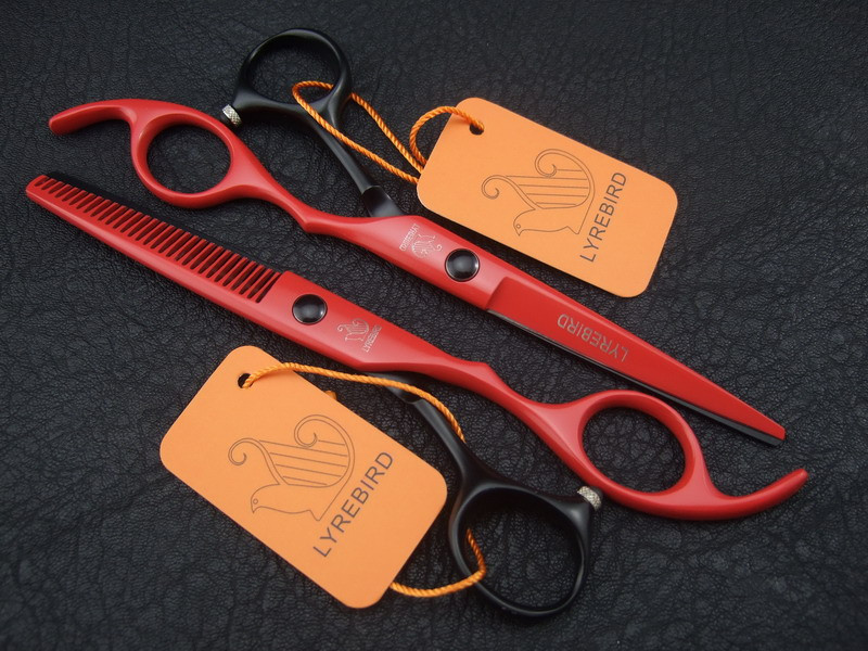 Hair scissors 6 INCH Red and Black scissors LYREBIRD tijeras peluquero Hairdressing scissors Black flat screw NEW