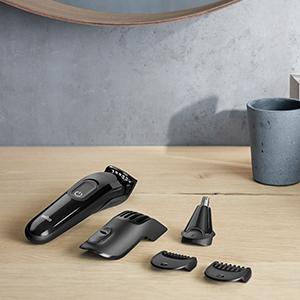 Fully washable head and comb For easy cleaning under running water. | Lifetime lasting sharp blades Provide high performance precision to achieve any style. The ultra sharp stainless steel blades cut through long or thick hair without any pulling or tugging. | Lifetime lasting power 40 minutes of precision trimming from a 10 hour charge. |