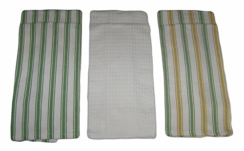 Green White Gold Striped Cotton Kitchen Dish Towel Set (6 Items)