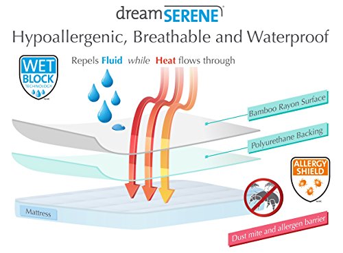 - Feature : Wet block technology is breathable, noiseless and protects the mattress from spills, incontinence and normal body moisture that occurs during sleep / Allergy shield creates a barrier between you and the mattress to protect against dust mites and allergens; Great for those with allergies and asthma / Ultra absorbent, silky smooth bamboo rayon fabric quickly wicks moisture away from the sleeper for the most cool and dry night's sleep available / Fitted sheet style fits mattress depths up to 18" for twin, twin xl and full, and up to 22" for queen and king sizes / Machine wash in hot water; Tumble dry low temperature