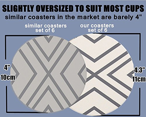 - AMPLE SIZE OF 4.3 INCH ( 11cm ) IN DIAMETER - Bigger than all other similar products of 4" in the market. It means these coastors suit all types of drinking Glass like bourbon, highball, lowball, hiball, whisky glasses, and Mugs, Tumblers and Flasks, making them excellent bar tools and accessories. Using the largest size coster in the market, you prevent spillage since your drinkware is well contained.