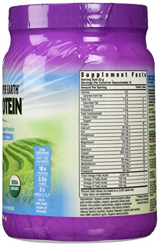 This unique blend of four powerful plant proteins collectively delivers a balance of all nine essential amino acids similar to high-quality animal protein. Also, provides 18 g of protein from complementary plant sources with inherent essential amino acids, fiber and omega-3, -6 and -9s, plus a whole host of naturally occurring minerals for complete and balanced nutrition that has been certified USDA Organic.Feature