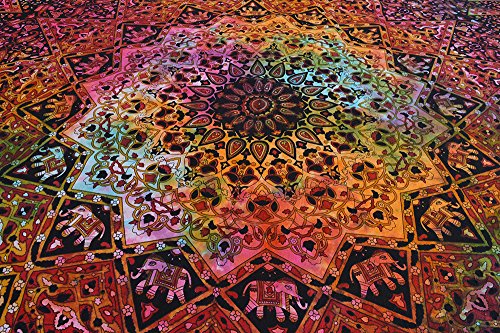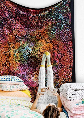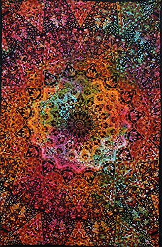 Popular Handicrafts Tie Dye Hippie Kaleidoscopic Star Intricate Floral Design Indian Bedspread Good Luck Marshala 54x84 Inches,(140cmsx215cms) Tye Dye Multi Color