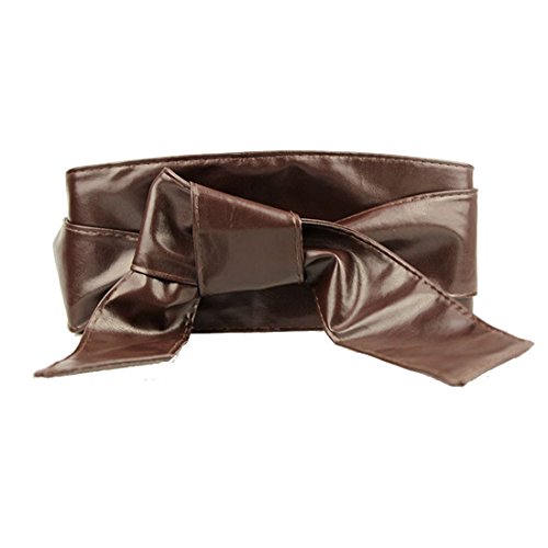 Neevas Women PU Leather Soft Self Tie Bowknot Band Wrap Around Sash Obi Belt Waistband