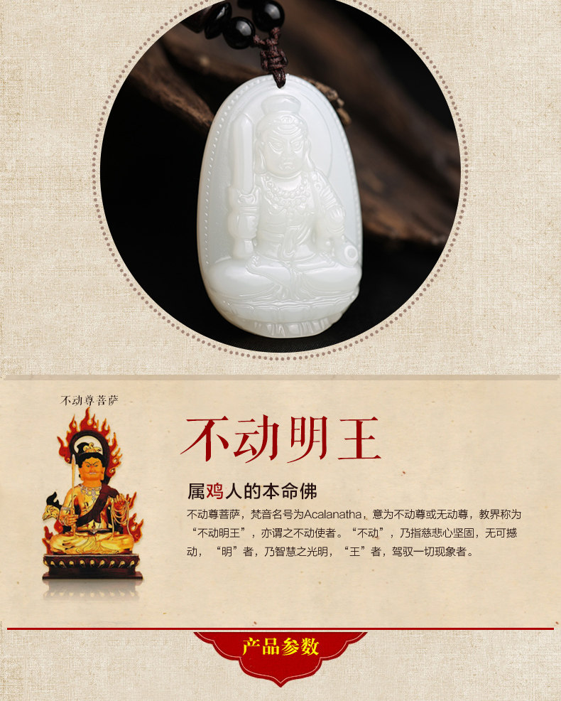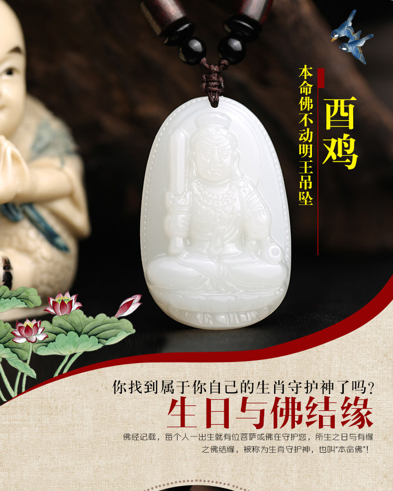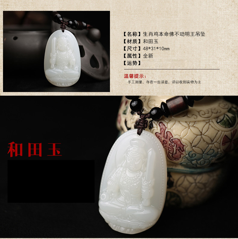 开光天然和田玉不动尊菩萨不动明王生肖属鸡吊坠项链守护神本命佛