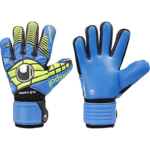 Studio : Uhlsport Publisher : Uhlsport Binding : Misc. Product Description PALM: - patented ABSOLUTGRIP foam BACKHAND: - 3D-embossed latex with SCHOCKZONE CUT: - half-negative cut with a thumb wrap - latex gussets with needle punches - wrap at the edge of the hand GLOVE BODY: - textile glove body - knitted bandage FASTENING: - full latex strap with namefield DESIGN: - new and unique ELIMINATOR design. 0
